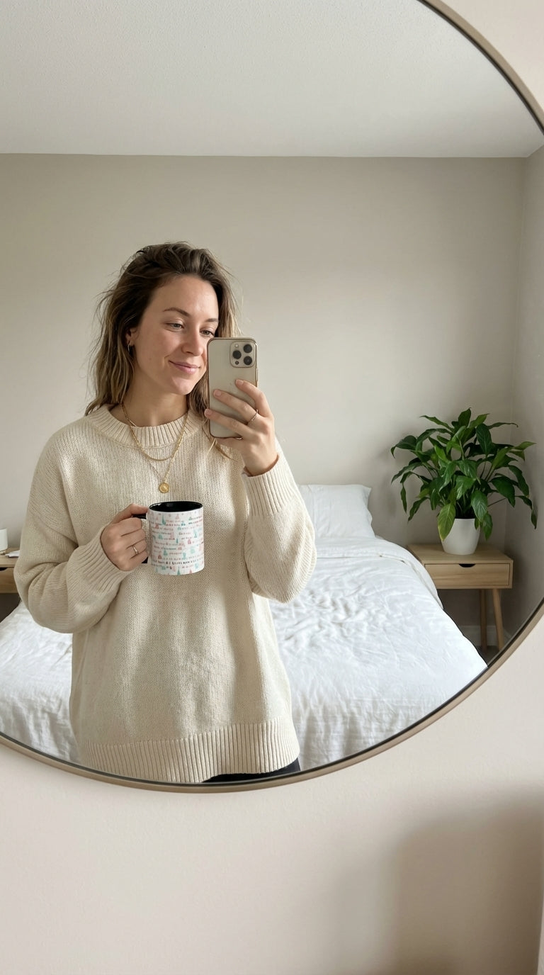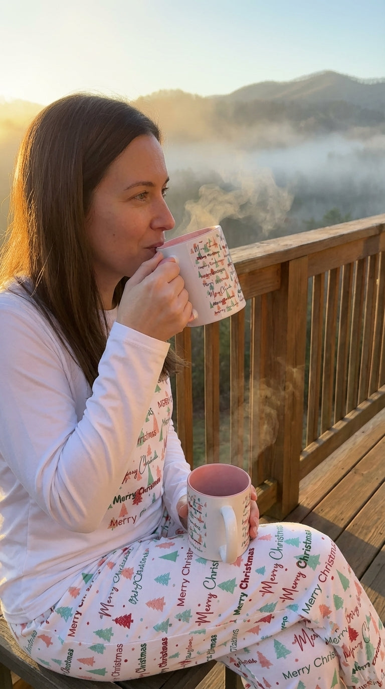 Warm mornings and quiet evenings feel a little brighter with this colorful accent mug. The wraparound print scatters soft pastel trees and playful “Merry Christmas” lettering that peeks out from every angle. A bold colored interior and matching C-handle give the design a pop that livens up holiday routines — coffee, cocoa, or an after-dinner tea. It sits comfortably in hand and brings a subtle, cheerful note to seasonal gatherings or slow solo moments by the window. Treat the everyday pause with something that looks handmade and thoughtfully designed.
