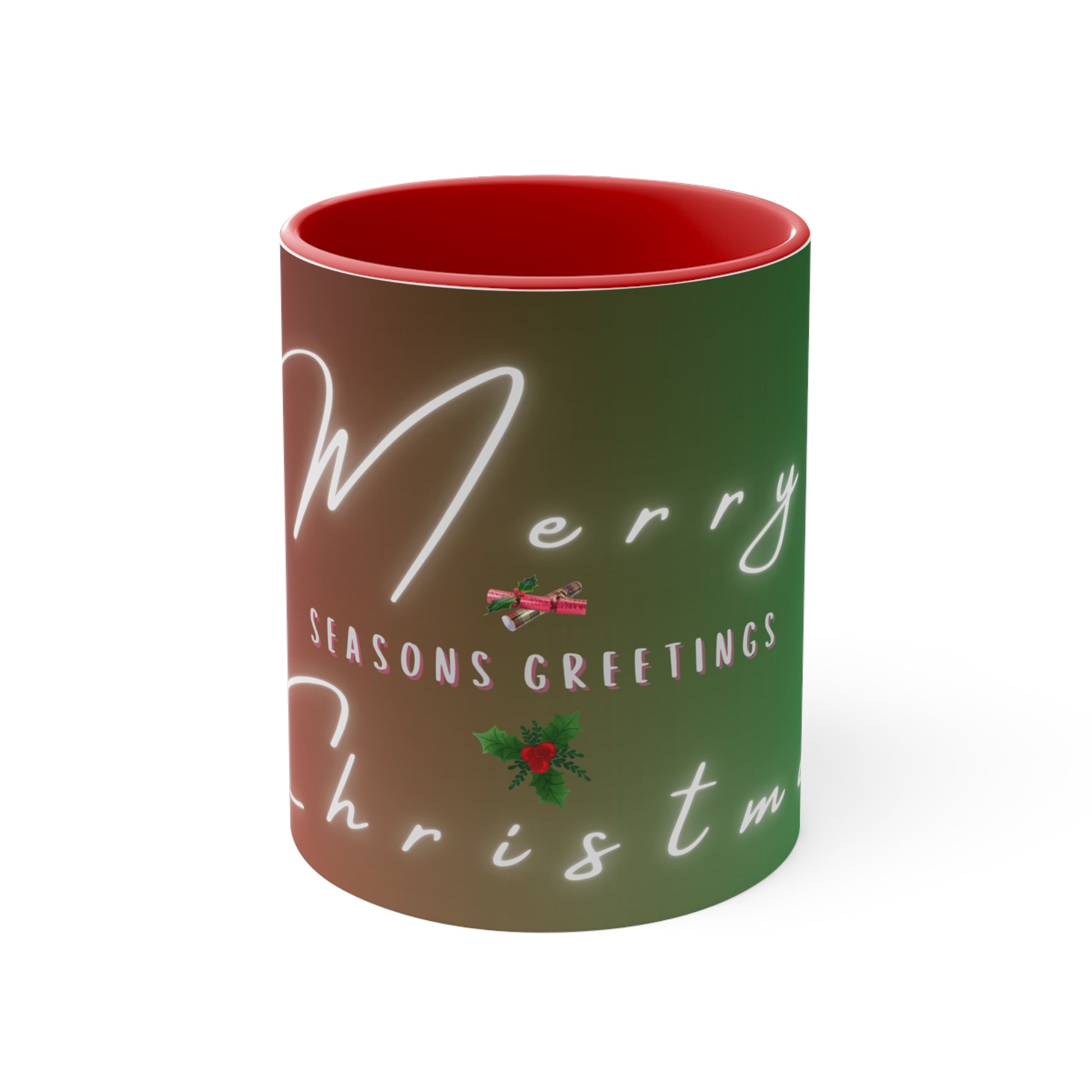 Merry Christmas Color Accent Mug — Seasonal Greetings 11oz